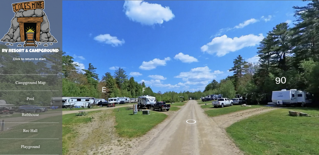 Cole’s Mine RV Resort uses CampSite 360 Interactive Booking, which allows guests to explore the campground and place their reservation directly within the virtual tour.