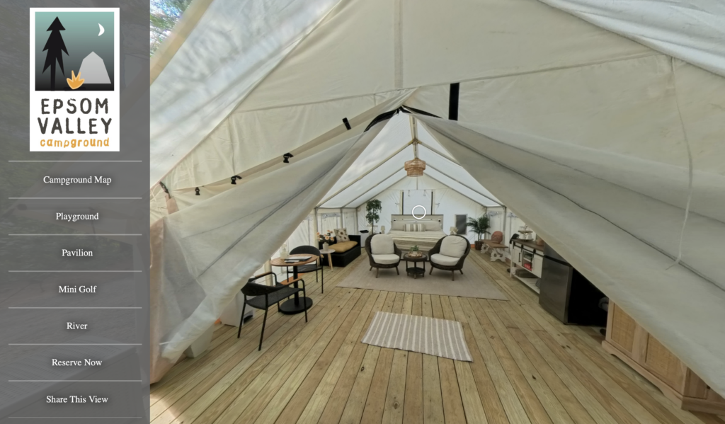 The 360° virtual tour at Epsom Valley Campground allows guests to virtually walk the campground and view campsites exactly as they appear in real life.