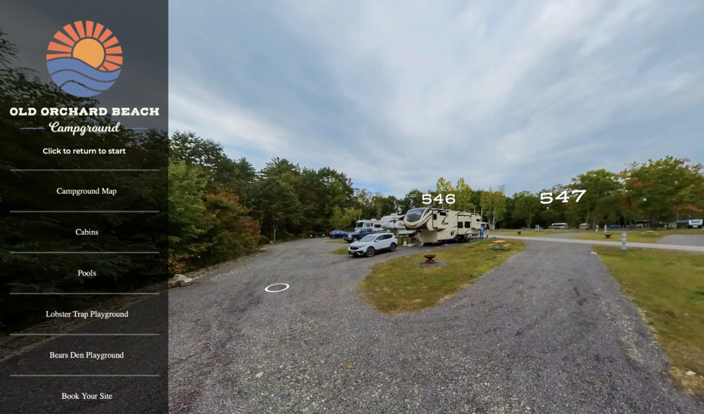“From start to finish, our project was handled professionally and on time. We are delighted with the outcome of our virtual tour”, states Mandi Cote, manager of Old Orchard Beach Campground. “We can direct [guests] to our website and the tour to show them exactly what the site looks like. Guests appreciate seeing sites and looking at the campground before reserving. We highly recommend CampSite 360 to anyone looking to offer a tour of their campground.”