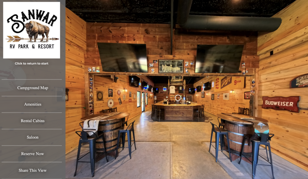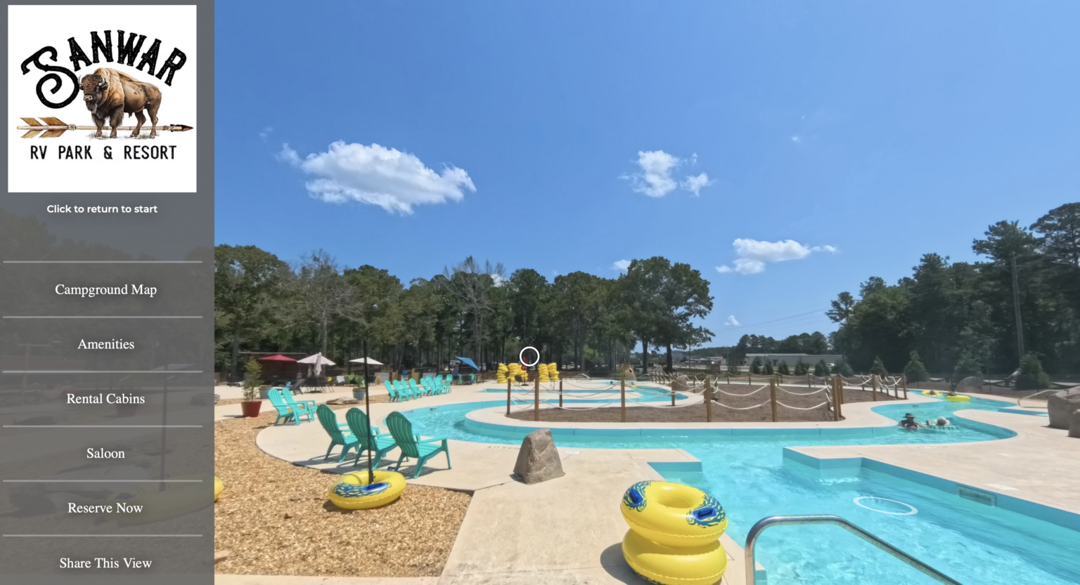 Sanwar RV Resort now offers a full CampSite 360 virtual tour, allowing guests to explore the campground online before they arrive.